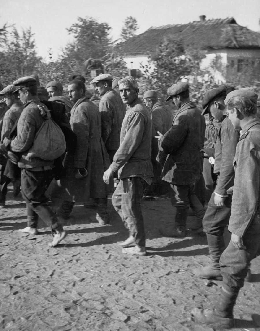 Пень тополя у нас во дворе, на нём двое раненых, я подошёл и прямо спросил. Рассказали, что вышли из окружения. Худые, щёки ввалились, глаза страшные, красные. Высокий пьяный махал руками, говорил громко, что у немцев оружие, техника передовая, что наших ополченцев прямо из эшелонов, без обучения отправляют в бой под угрозой расстрела. Что генералы переходят на сторону противника, действуют изменнически. Может, эти парни не вышли из окружения, а дезертировали, кто знает. Всё это весьма уныло.
