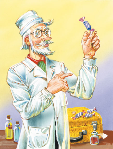– Это естественно для данного заболевания, – ответил Детский Доктор, насыпая что-то в бумажный кулёк. – Таким детям я даю лекарство в виде конфет. Вы видите, самая обыкновенная конфета в розовой бумажке. Самые трусливые дети смело кладут её в рот и…