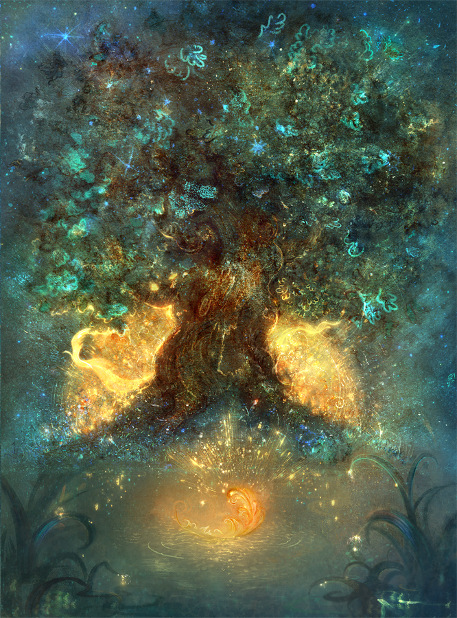Город оказался пуст. Открытые настежь темнели дупла с потухшими каминами, и круглые дверцы из меди и стали (совы очень любят металлические дверцы) блестели в звездном свете. Поваренок звал других жителей, но лишь ветер выл в дымоходах, да тьма жадно смотрела из-под Города и будто шептала: «Спустись… спустись… спустись…»