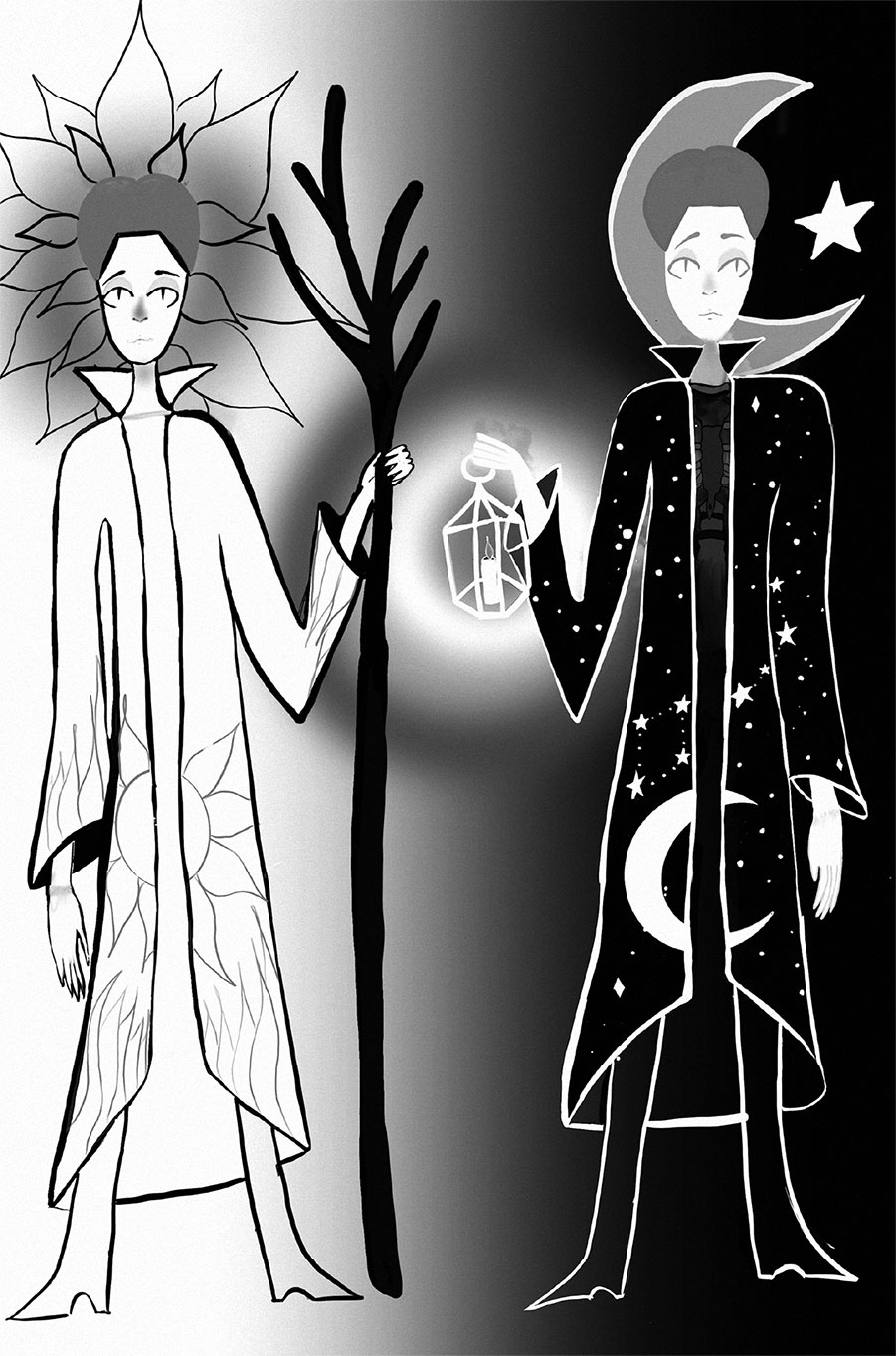 Руфин с Александрой явились на большую поляну не слишком рано и не слишком поздно – в самый раз. Костры были уже зажжены – их было не менее десятка, и место торжества освещалось не только луной, но и весёлым пламенем. За огнём присматривали двое: Архелий и второй, похожий на него, как родной брат-близнец – Астерий. Говорили, что он просыпается только ночью – ночной страж. Саша раньше не видела этого второго и с интересом на него посматривала. Забавно видеть, когда два человека (или Сущности) настолько похожи – будто раздвоился один. У Астерия тоже было старинное ружьё и подвешенный на поясе рожок. Различались стражи только цветом кафтанов: на Архелии был коричневато-оранжевый, а на Астерии – тёмно-синий. Понятное дело, Астерий тоже молчал, как и Архелий. Зато делали они всё проворно и споро: подкладывали сучья в костры, следили, чтоб огонь не распространялся шире отведённого ему места и, вообще, поддерживали порядок.