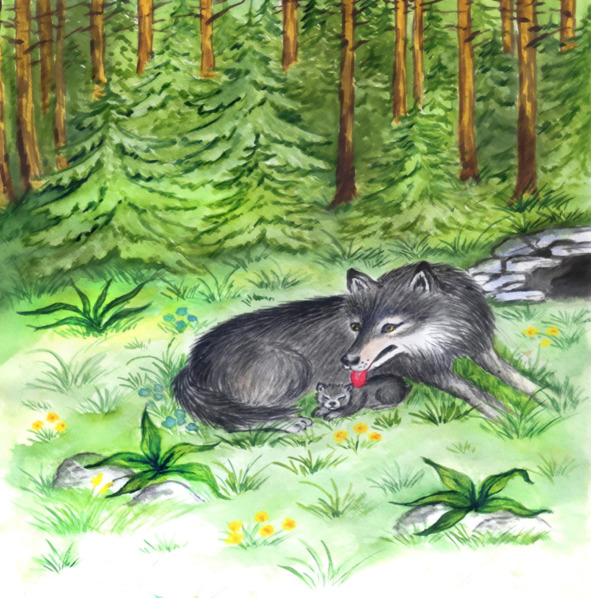 В волшебном лесу тем временем случилось прекрасное событие. Одна молодая волчица ощенилась, и на свет появился маленький волчонок. Мать-волчица очень радовалась появлению малыша, очень желанного и красивого. В волшебном лесу устроили настоящий праздник, все радовались рождению маленького волчонка.
