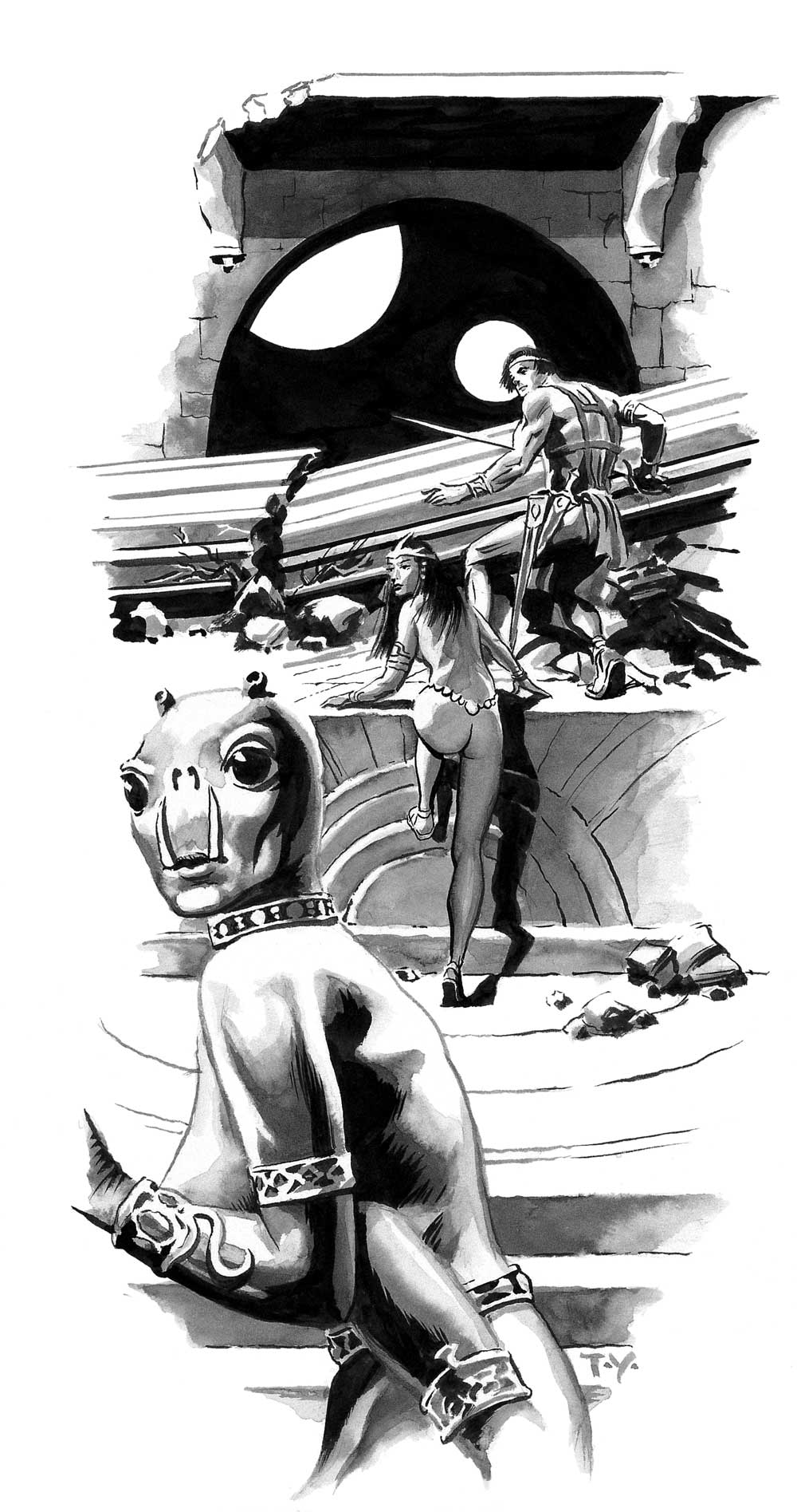 Вскоре Тал Хаджус подал знак, чтобы все покинули зал и оставили пленниц наедине с ним. Подданные постепенно растворились в тени смежных с залом помещений, а Дея Торис и Сола продолжали стоять перед джеддаком Тарка.