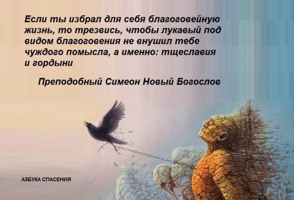 Если ты избрал для себя благоговейную жизнь, то трезвись, чтобы лукавый под видом благоговения не внушил тебе чуждого помысла, а именно: тщеславия и гордыни.