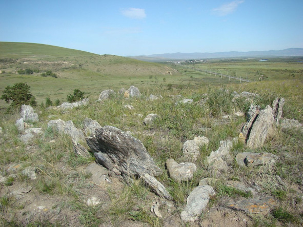 Наш дом в Шибертуе, в котором мы жили в последние годы, был расположен под речкой, а одно из стойбищ находилось на другом берегу этой речки неподалёку от нас. Я всегда интересовался этими курганами, камни которых уже начали растаскивать при строительстве новой шоссейной дороги Улан-Удэ – Бичура, которая шла от перевала Заганского хребта прямо через нашу реликтовую рощу. Раньше ездили по левому берегу реки Заган-гол вдоль невысоких сопок. Новая дорога проходила по топкой болотистой местности, прокладываемой после рубки лиственниц, сосен, елей и берёз. Низ её закладывали этими камнями с курганов, сверху укладывали срубленные здесь же деревья и кустарники, затем засыпали землей.