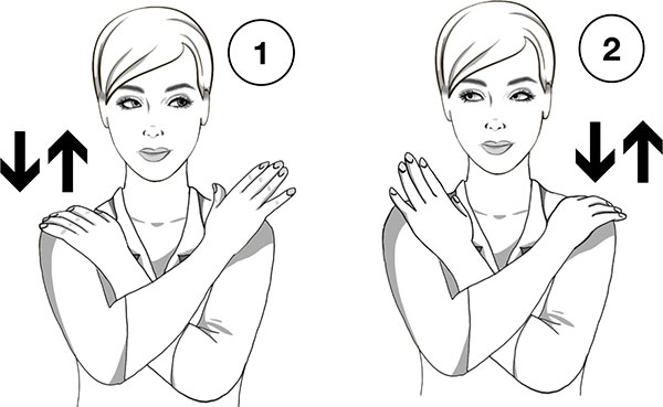 Под упражнением «Бабочка» я подразумеваю такой вид стимуляции, когда клиент обнимает себя, кладёт кисти на свои плечи и поочерёдно похлопывает себя по плечам. Это упражнение достаточно широко сейчас используется, особенно в самостоятельной практике.