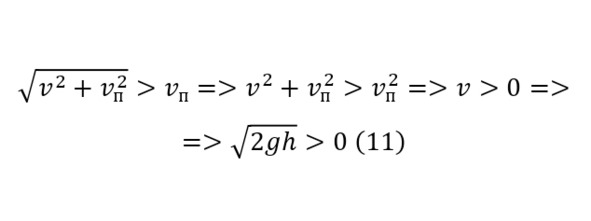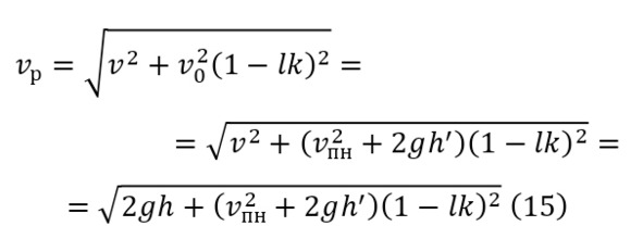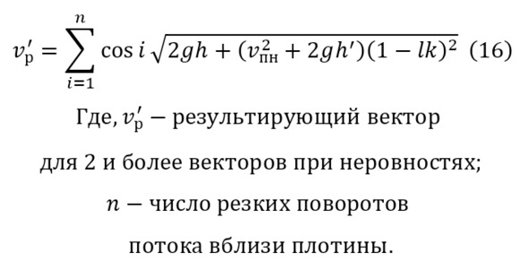 That is, no matter how small the height of the dam and its difference between the outlet of the flow and the water level, the effect, although insignificant, will be provided. It is also interesting here to determine the dependence of the initial velocity itself and the resulting vector (12).