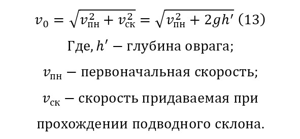 And it is important to take into account that (13) together with (14) acts only with a flat slope of the ravine itself, not counting the coefficient of friction, in the case of its calculation, an additional coefficient is included in (14), exactly as in other cases, for implementation, but this coefficient is determined empirically.