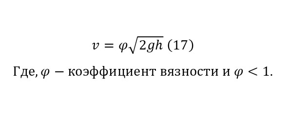 This type (17) of formula (8) was proved and described by the Italian scientist Evangelista Torricelli in 1643, and later it was shown that this formula, as already mentioned, is a consequence of Bernoulli's law.