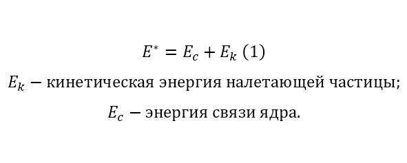If we follow this theory, then, as described, the nuclear reaction follows in two stages, while the entire process from collision, formation of a composite nucleus and its decay takes within 10-23-10-21 seconds. And it is important to note that whatever the composite nucleus is, it is always excited due to the excess energy that is introduced by the particle in the face of the binding energy of nucleons in the composite nucleus and part of the kinetic energy of the composite nucleus, which is equal to the sum of the kinetic energy of the target nucleus with a certain large mass number and the incident particle in the system of the so-called the center of inertia.