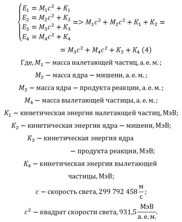 The law of conservation of energy in nuclear reactions acts predictably, but very specifically for representatives of the macrocosm. In this case, the equality of the sums of the total energies (3) is fulfilled.