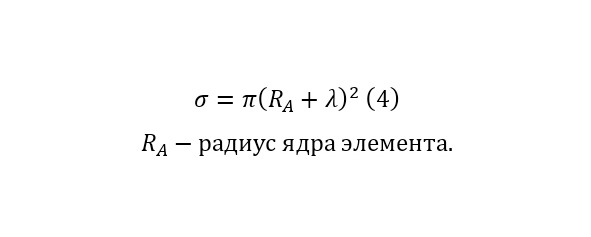 But what is the area, once in which the core will get into the interaction? For one nucleus, we introduce the concept of the nuclear effective cross section, the same region, and since the actions take place in a circle relative to the nucleus of an atom, this value is determined by (4).