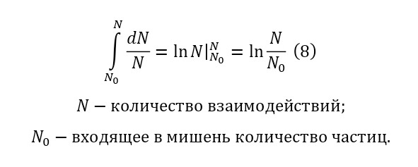 Now, how to determine the output power? To do this, you need to calculate the energy, which is already easy to do, but how to determine the resonant current? To define it, imagine the following. The target plate consists of arranged atoms and let a certain number of charged particles enter inside. If we place a reference frame at the beginning of the target, then we can use the following statement that the particles will pass through some part of the target, which begins at a certain coordinate and ends at the coordinate of the sum of this coordinate and the thickness of the part itself, and the thickness is equal to the difference of these coordinates.