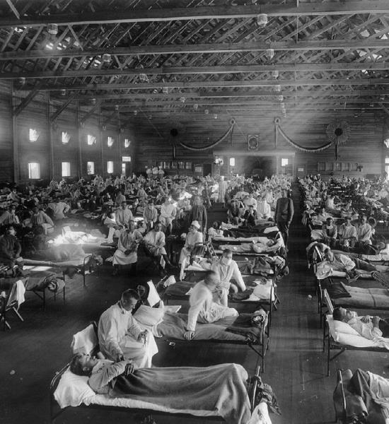 Кондуктор запрещает вход пассажиру без маски в Сиэтле. Госпиталь для больных «испанкой» в Канзасе.