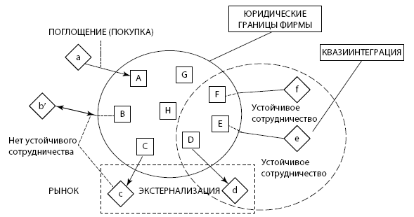 Рис. 1.2. Юридические границы фирмы и квазиинтеграция Источник: [Шерешева, 2010].