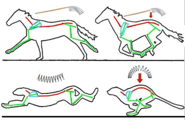 Но еще более мощным эволюционным шагом вперед в анатомии лошадиных стоп была не потеря дополнительных пальцев, а эволюция пружинящей ступни, способствующая, помимо скорости, и колоссальному энергосбережению при шаге. К моему великому удивлению, об этом невероятно важном механизме не знает абсолютное большинство ковалей и ветеринаров! Иначе непонятно, почему они его игнорируют. Стрелка, мякиш и внутренние структуры в пятке копыта выполняют роль, не просто амортизатора, эффективно поглощающего энергию удара, но и пружины, облегчающей перестановку ноги. Стрелка имеет форму треугольника именно для того, чтобы принимать на себя удар грунта и направлять энергию прямо к копытной кости. При подкове, высоких пятках, атрофированной стрелке, длинном зацепе эту работу выполняют сухожилия, чья прочность сильно ограничена, особенно у высоких лошадей. Копытная капсула состоит из трубочек, и сама по себе очень легкая, все мышцы ниже запястья заменены сухожилиями – весь организм лошади направлен на то, чтобы максимально облегчить конечность и экономить энергию при движении. Однако зачем такие невероятные изобретения? В современном окружении у диких лошадей нет конкурентов, способных уверенно соревноваться с ними в скорости. Но в то время они были, а перемещение на огромные расстояния в поисках пищи, давало возможность делать это с меньшими затратами энергии.