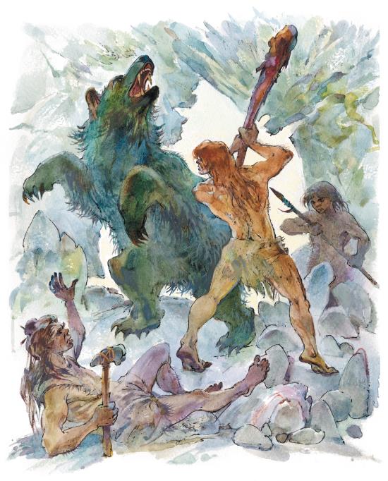 Молодой воин был хорошо знаком с пещерным медведем. Этот миролюбивый гигант с выпуклым лбом обычно спокойно жил в своём логове и питался исключительно растительной пищей. Только голод мог заставить его охотиться и есть мясо.