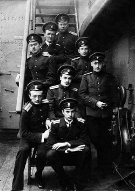 Эта система кораблей воспитала особую школу моряков. К ним принадлежали все без исключения адмиралы русского флота, а также большинство судовых командиров и старших офицеров, принимавших участие в Русско-японской войне. Яркими представителями этой школы были адмиралы Алексеев, Дубасов, Чухнин, Скрыдлов, Бирилев, Рожественский и отчасти Макаров, единственный во флоте человек, который, будучи сыном боцмана владивостокского полуэкипажа, проник благодаря счастливым обстоятельствам в чрезвычайно замкнутую и недоступную касту морских офицеров. Но даже и этот наиболее передовой и талантливый из морских руководителей, чувствуя уже нарождение новой судовой техники, не мог преодолеть в себе всей силы привычек и традиций парусной эпохи. А что можно сказать о других адмиралах? Из прежних навыков они черпали свои организационные принципы, способы управления эскадрой, кораблями и людьми. В новый флот с машинами тройного расширения, электротехникой, гидравликой и всеми бесчисленными специальными механизмами они целиком перенесли социальную обстановку крепостнического времени…
