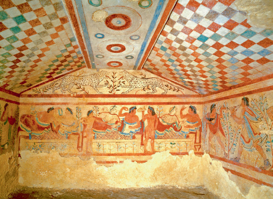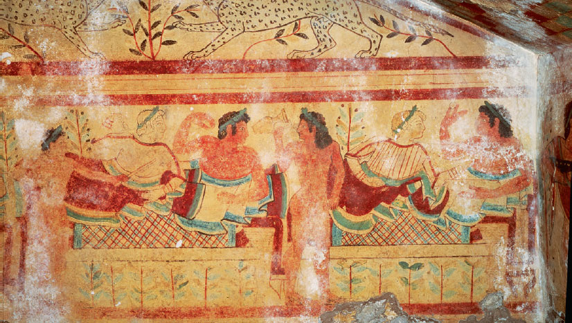 На росписях этрусских гробниц, высеченных в скалах Тарквинии, под Римом, мертвые веселятся на своем вечном пиру.