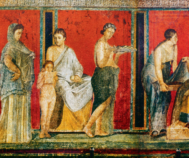Город Помпеи, разрушенный извержением Везувия, сегодня представляет собой подлинный музей римской живописи с I в. до н. э. до 79 г. н. э., когда произошла катастрофа. Самые знаменитые помпейские фрески до сих пор украшают виллу, для которой они были созданы. Считается, что на них воспроизведен обряд инициации.
