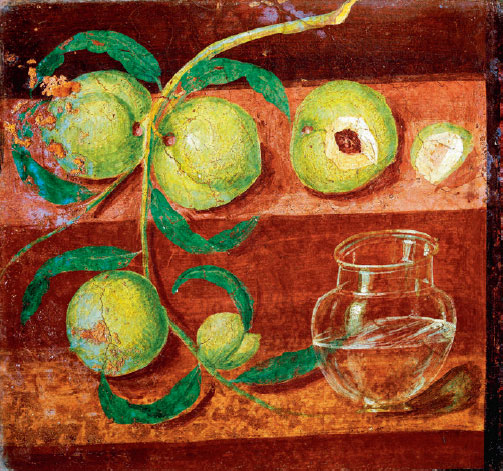 Натюрморт как жанр живописи создан в Древней Греции. Фризы помпейских фресок часто оживлялись растительными мотивами. И «Натюрморт с персиками» – очевидная удача художника. Это не просто воспроизведение обыденных предметов; мастера придали своему творению символическую нагрузку. Созревшие персики и тонкий сосуд со свежей водой приглашают к чистому наслаждению. Но в то же время и хрупкость этих неодушевленных предметов отсылает к ненадежности человеческого бытия.