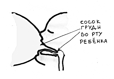 Заметьте, в норме кроха захватывает не только сам сосок, но и практически всё околососковое пространство. Вы удивитесь, но сосок матери распластывается во рту у малыша по языку и достигает практически его корня. Кроха совершает «доящие» движения языком и молоко попадает прямо ему в горло.