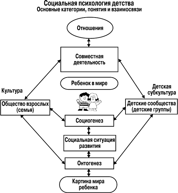 Такое понимание предмета социальной психологии детства выдвигает на передний план рассмотрение и анализ взаимосвязей системообразующих категорий и понятий (см. рис. 1), где в схематичном виде представлены все рассматриваемые методологические единицы социальной психологии детства, которые будут проанализированы.