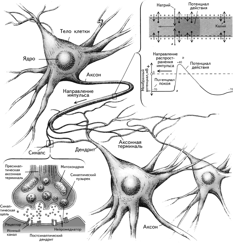 Рис. 1.10. Коммуникация нейронов (Фишбах, 1992).
