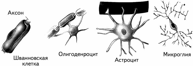 Рис. 1.12. Формы некоторых глиальных клеток.
