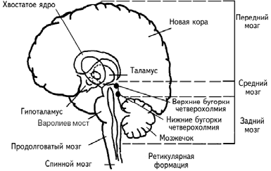 Рис. 1.3. Схематическое расположение подкорковых ядер и структур (Спрингер, Дейч, 1983).