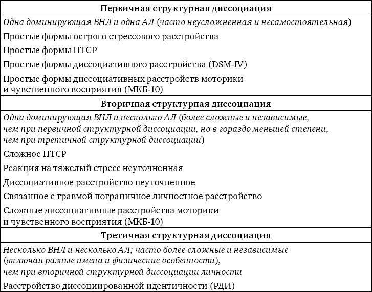 Таблица 1.1. Диагнозы и структурная диссоциация