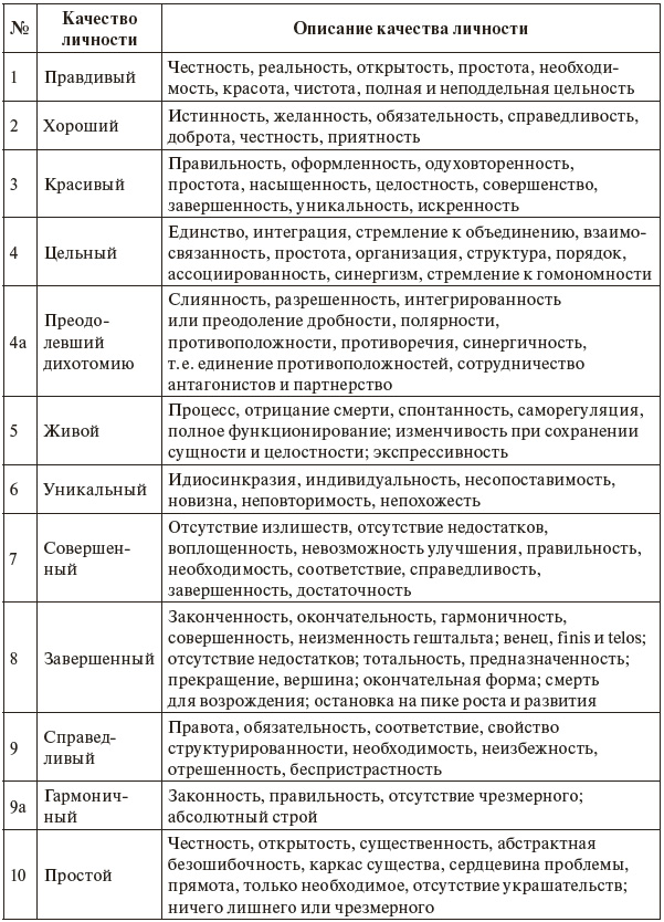 Кроме того, Маслоу выделяет: ясность, смиренность, способность к эго-трансценденции, познавательную живость, преобладание высших переживаний, любовь к бытию, непротивление, уважительность к бытию, способность к творчеству (Маслоу, 1999, с. 146–147).