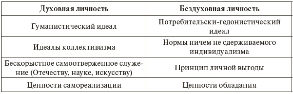 Тип «духовная личность» и тип «бездуховная личность»