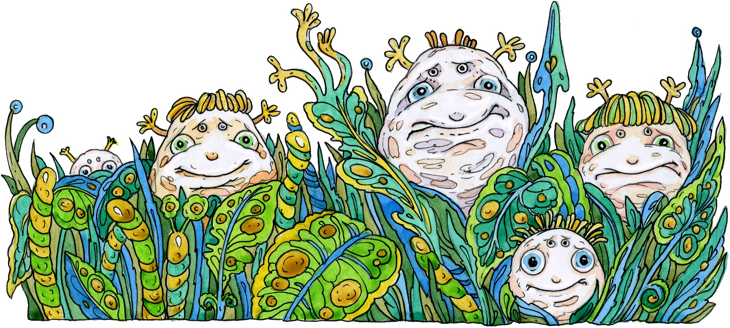 Существа, шелестя травой, поскакали навстречу Лисане. Они радостно прыгали, едва доставая Лисане до колена, и трясли лапами, напоминающими большие зелёные листья. Если спрятаться в высокой траве и прикрыться такими лапами, никто тебя не заметит. Очень удобно! Может, потому и считается, что животной жизни на этой планете нет? Попробуй разгляди их!