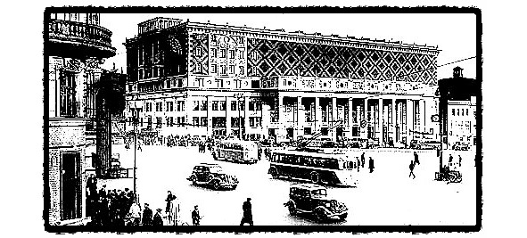 На углу площади и улицы Горького в сторону центра перед войной было закончено строительство помпезного красивого здания с арочным проходом, на многие годы и по сей день украсившего площадь – Зала Чайковского. За ним до сада Аквариум шло строительство будущего театра Сатиры с купольным завершением. В Аквариуме среди вековых деревьев в то время и ещё долго находилась длинная деревянная постройка – одноимённый кинотеатр. За ним пряталась общественная уборная, очень облегчавшая жизнь посетителей сада и ожидавших сеанса кинозрителей.