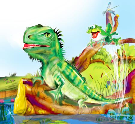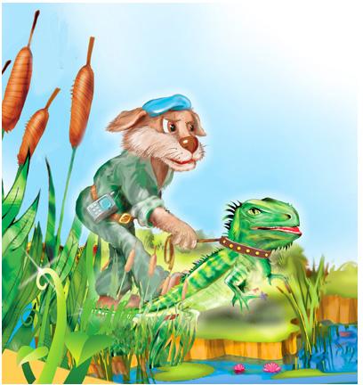 − Это не чудовище, это зелёная игуана, родом из Южной Америки. Мои хозяева её за большие деньги приобрели. Чтобы она воров и нежданных гостей от их квартиры и дачи отпугивала.