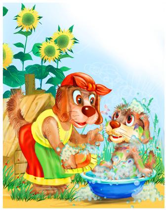 Вскоре тот появился – лапы по самый живот в грязи, шерстка «ёжиками» от репейника утыкана, хвост мокрый. Отругав Борьку за глупые водные игры с цыплятами, мама поместила грязнулю в большую миску с водой. Плеснув туда шампунь, она приступила к «стирке» своего неистощимого на шалости чада. После того, как щенок обрёл свой первоначальный вид, он был заперт в конуре.