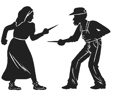 «Остаться и бороться» символизировали два колониста, дерущиеся на ножах. (Женщины сочли рисунок слишком жестоким, но смысл ясен.)