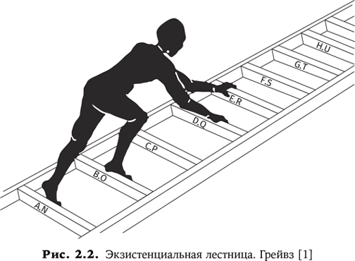 В своей статье «Ухудшение трудовых стандартов» (The Deterioration in Work Standards), опубликованной в журнале Harvard Business Review в ноябре 1967 г., Грейвз применил свою теорию к решению таких проблем, как контроль качества продукции и реструктуризация. Бек и Кован отмечают, что теория Грейвза «указывает, каким образом следует трансформировать компанию или культуру для того, чтобы ее оздоровить и сделать более восприимчивой к внедрению сложных технологий и быстрым изменениям» [6]. На рис. 2.2 изображена экзистенциальная лестница в том виде, в каком она была описана Грейвзом в журнале The Futurist в 1974 г.