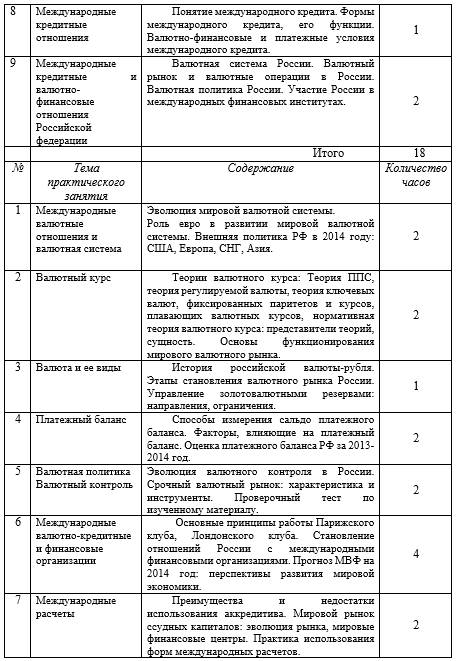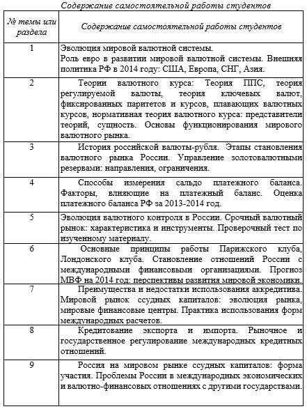 Рабочая программа дисциплины «Международные экономические и валютно-финансовые отношения»