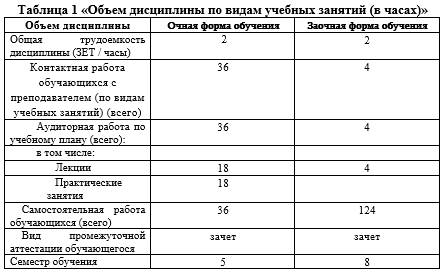Общая трудоемкость (объем) дисциплины составляет 2 зачетных единицы (ЗЕ), 72 академических часа.