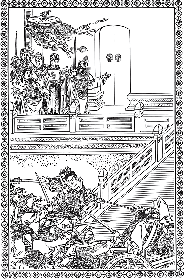 Ли Су отрубил Дун Чжо голову и высоко поднял ее. Люй Бу вытащил из-за пазухи указ и объявил: