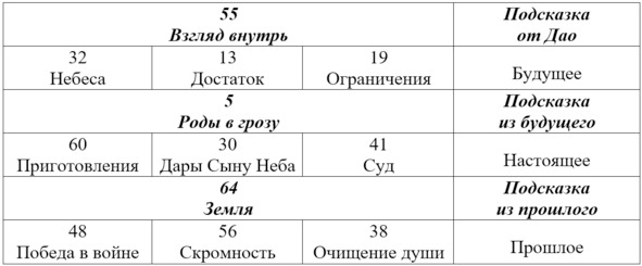 А если дополнительно хотим проанализировать изменяющиеся линии, то смотрим последнюю часть гексаграммы, начинающуюся со слов: Там классический текст я оставил без изменений. . «Вердикт Оракула»