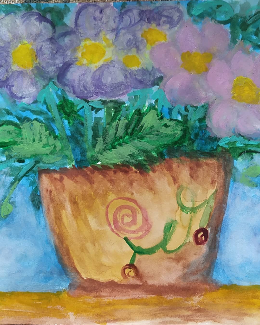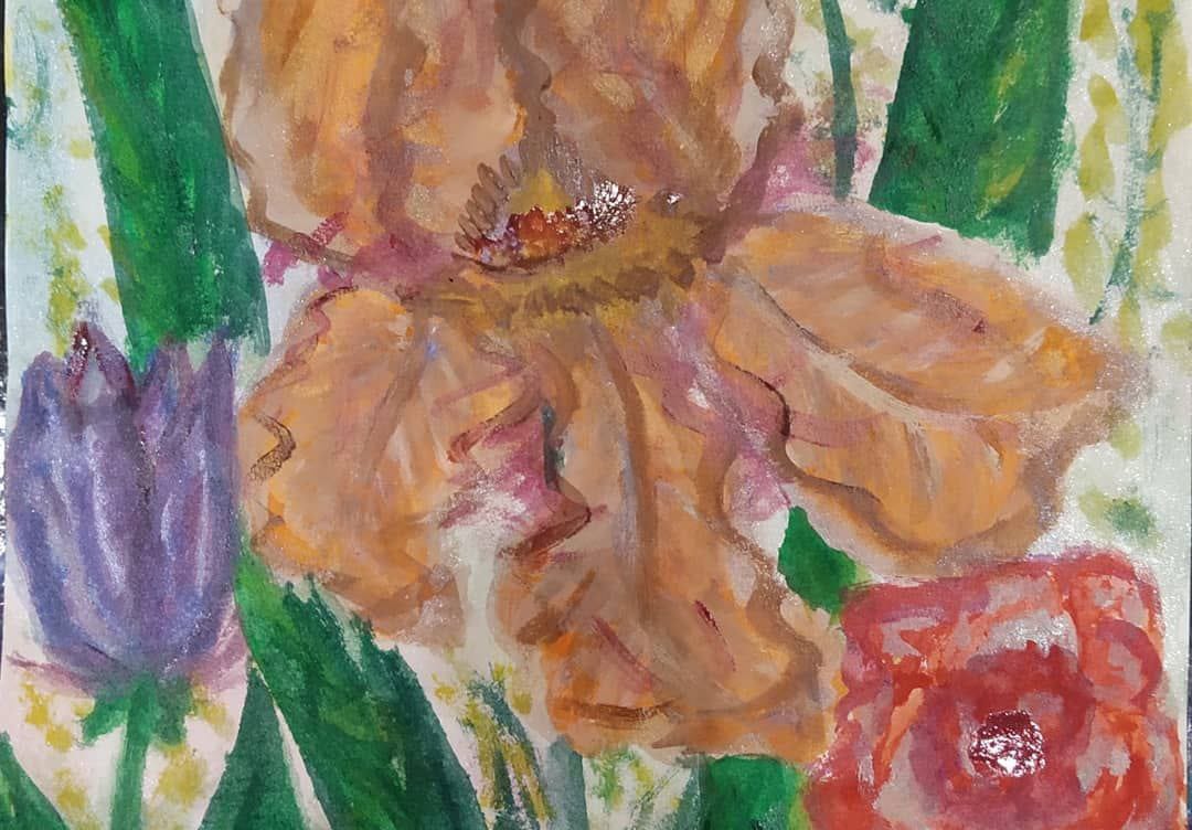 Это чудесный уголок, где летом цветёт много роз, ирисов и гладиолусов.