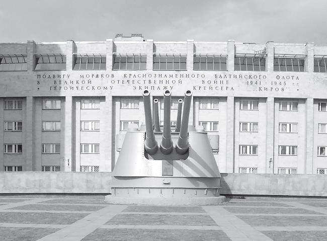 Во второй половине 1980-х годов на мощных постаментах установлены как памятник носовые артиллерийские башни и винты крейсера «Киров». В дни героической обороны Ленинграда крейсер, стоявший на Большой Неве напротив Васильевского острова, вел огонь по немецким позициям. В 1978 году при разборке отслужившего крейсера его вооружение и винты были сняты и сохранены как исторические реликвии.