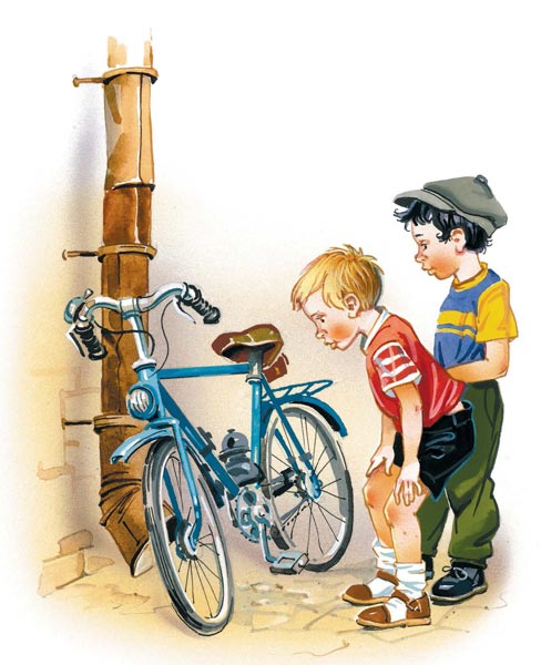Это было чудесно! Ветерок засвистел у меня в ушах, всё вокруг понеслось быстро-быстро по кругу: столбик, ворота, скамеечка, грибы от дождя, песочник, качели, домоуправление, и опять столбик, ворота, скамеечка, грибы от дождя, песочник, качели, домоуправление, и опять столбик, и всё сначала, и я ехал, вцепившись в руль, а Мишка всё бежал за мной, но на третьем круге он крикнул: