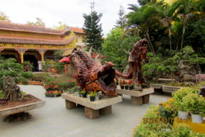 В Далате живет одна пожилая женщина,которая решила увековечить свое имя Мадам Нга (Нга означает Россия,где она 15 лет прожила),создав необычайное строение. Крейзи Хаус – необычный дом в форме дерева .Многие не воспринимают,а Нонне с Трифоном понравилось. Это замок,где можно остановиться на ночлег.Выполнен он из бетона,но смотрится,как будто из дерева.Затейливые комнатки,окошки,лесенки-переходы,картины и статуи животных.В таком многообразии жанров можно заблудиться.Сама Мадам живет здесь же в небольшой конторке (оказалось,что ее муж не смог смириться с причудами супруги и оставил ее,а она – много-много миллионов вьетнамских донгов…).