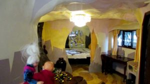 Нонна сильно устала и захотела остановиться в этом Крейзи Хаусе. Они пошли выбирать номер,но не рискнули – кругом веяло страхом и ужасом, ведь этот отель очень необычной архитектуры, входит в десятку самых необычных зданий в мире. Построен он в стиле «сказочного дома» и напоминает огромное дерево с переплетающимися ветвями, корнями, заросшее паутиной, поросшее грибами и живущими там животными.