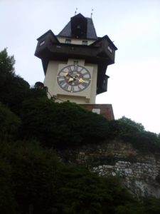 Вдали горы Альпы, внизу город Грац, а вокруг парк красивый и замок Шлоссберг (нем. Schlossberg) название переводится как Замковая гора – популярное у туристов место. Высота горы 450 метров. Интерес путешественников вызван тремя фактами: какое-то время Грац был столицей Австрии. Второй факт – крепость Шлоссберг вошла в книгу рекордов Гинесса как крепость, которую никому не удалось взять. И третий факт: В 1999 году замковая гора Шлоссберг занесена в список Всемирного наследия ЮНЕСКО как культурный памятник. У крепости Шлоссберг более чем тысячелетняя история. Возведена она в 1125 году на месте старого оборонительного сооружения. Театр старинный, ложи каменные. Неужто кто-то попрется по ступенькам на такую высоту?
