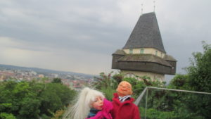 А вот и главная достопримечательность Граца – замок Шлосберг . Он находится в центре на высоченной горе. Туда они и отправились пешком по лесенке.