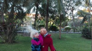 На небольших саночках они скатывались с горки. Нонна хохотала как ребенок.Они приехали во Вьетнам зимой, ноздесь вместо снега был песок, так романтично!